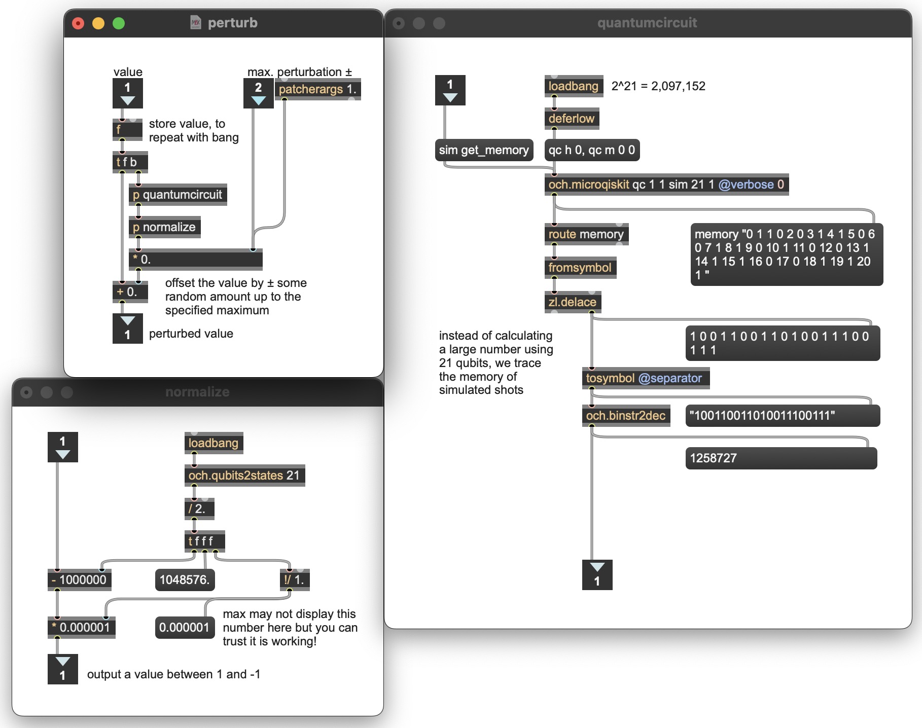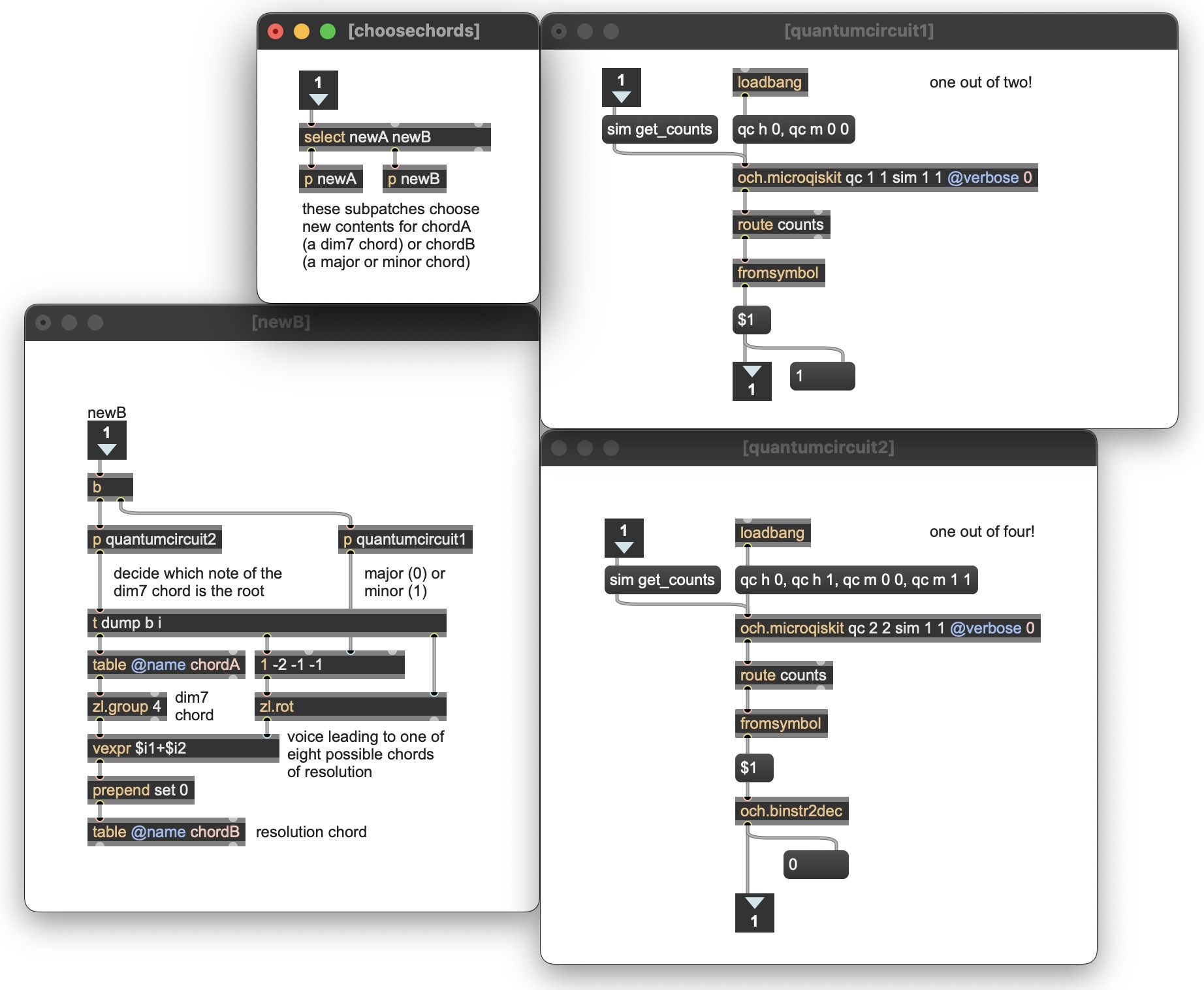 Abstract. Quantum computing can be employed in computer-aided music composition to control various attributes of the music at different structural levels. This article describes the application of quantum simulation to model compositional decision making, the simulation of quantum particle tracking to produce noise-based timbres, the use of basis state vector rotation to cause changing probabilistic behaviors in granular harmonic textures, and the exploitation of quantum measurement error to cause noisy perturbations of spatial soundpaths. We describe the concepts fundamental to these techniques, we provide algorithms and software enacting them, and we provide examples demonstrating their implementation in computer-generated music.